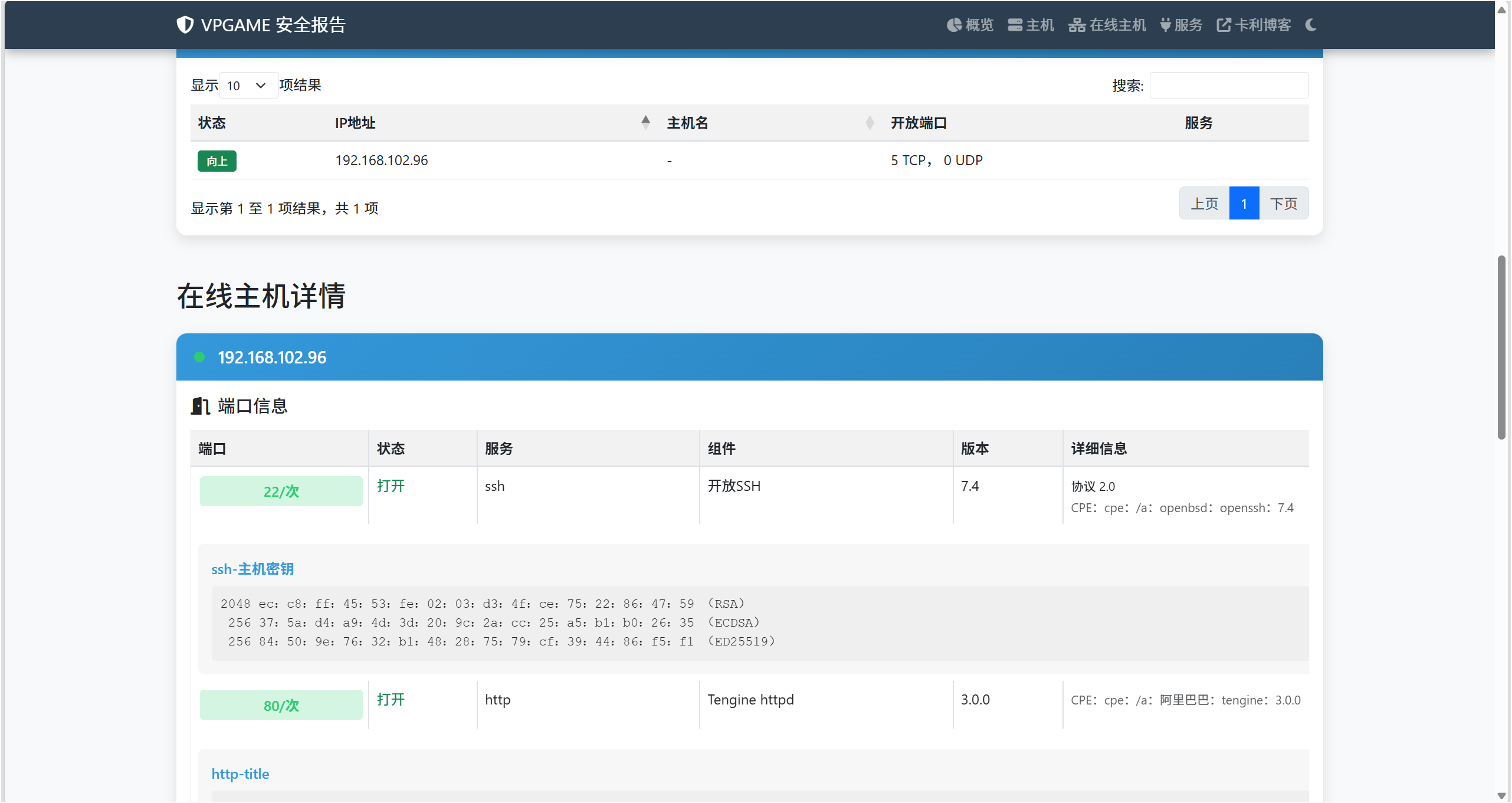 详细的主机信息展示,包含所有扫描到的信息。