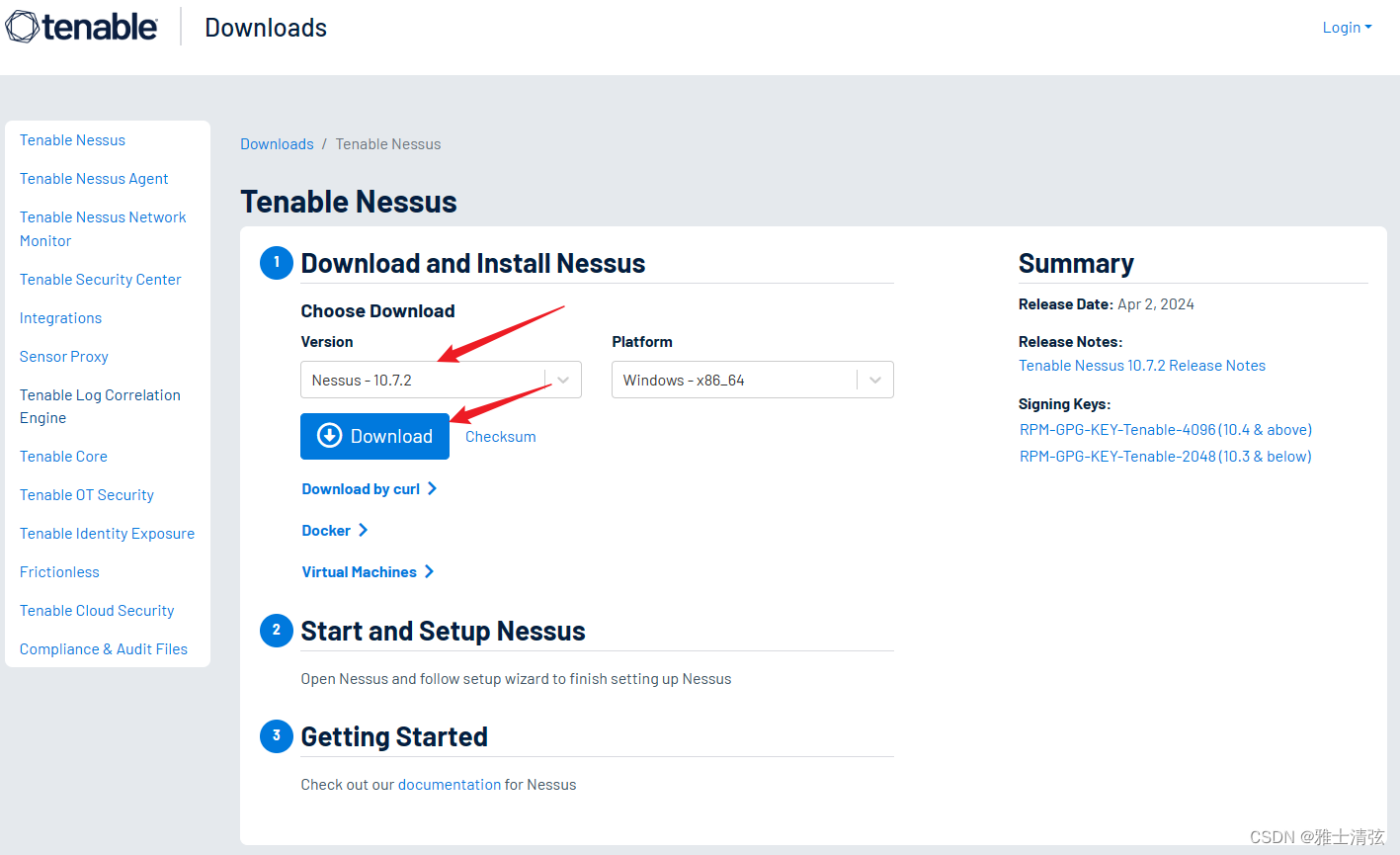 在Nessus官网下载,我是下载的 10.7.2 版本,链接:Downloads | Tenable®