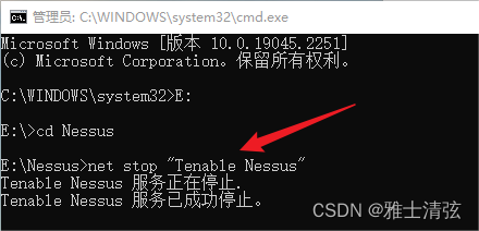 输入 net stop "Tenable Nessus",停止之前自启动的 Nessus 服务