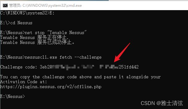 输入 nessuscli.exe fetch --challenge ,记住 Challenge code (后面要用到)