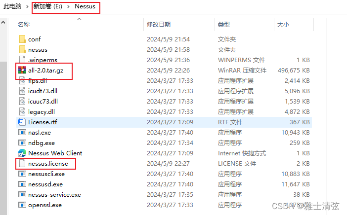 按图中操作下载 all-2.0.tar.gz 与 nessus.license,两个文件都复制到 Nessus 安装目录下