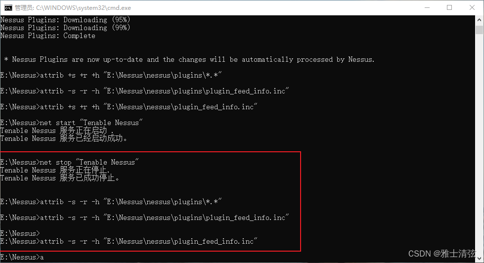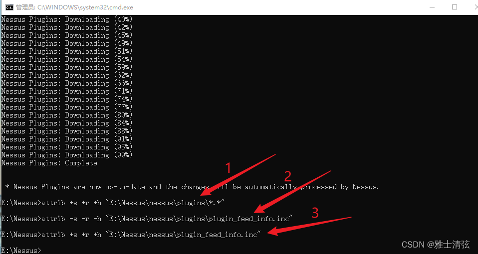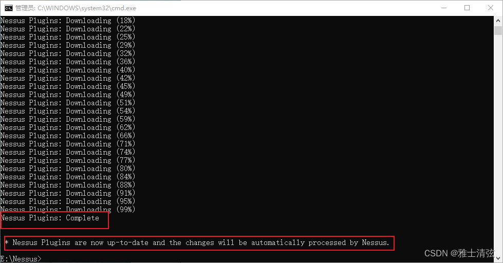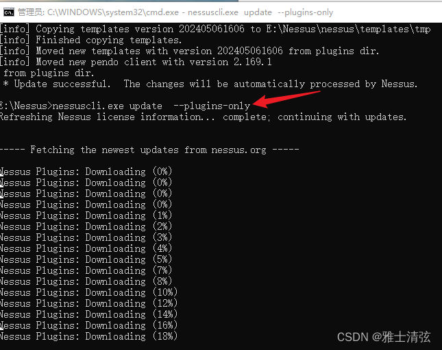 继续输入 nessuscli.exe update --plugins-only ,等待下载更新和解压插件