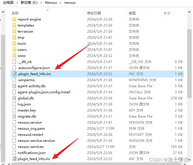 然后将修改后的 plugin_feed_info.inc 文件复制到 E:\Nessus\nessus 目录下,替换掉原文件,并将 .plugin_feed_info.inc 文件内容也替换为 plugin_feed_info.inc 文件中内容