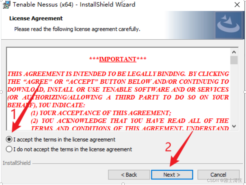 浏览器访问 https://127.0.0.1:8834, 按图中所示勾选相关选项,进行下一步