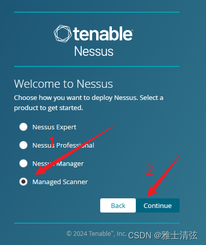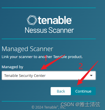 点击下拉框,选择 Tenable Security Center 选项,点击 Continue