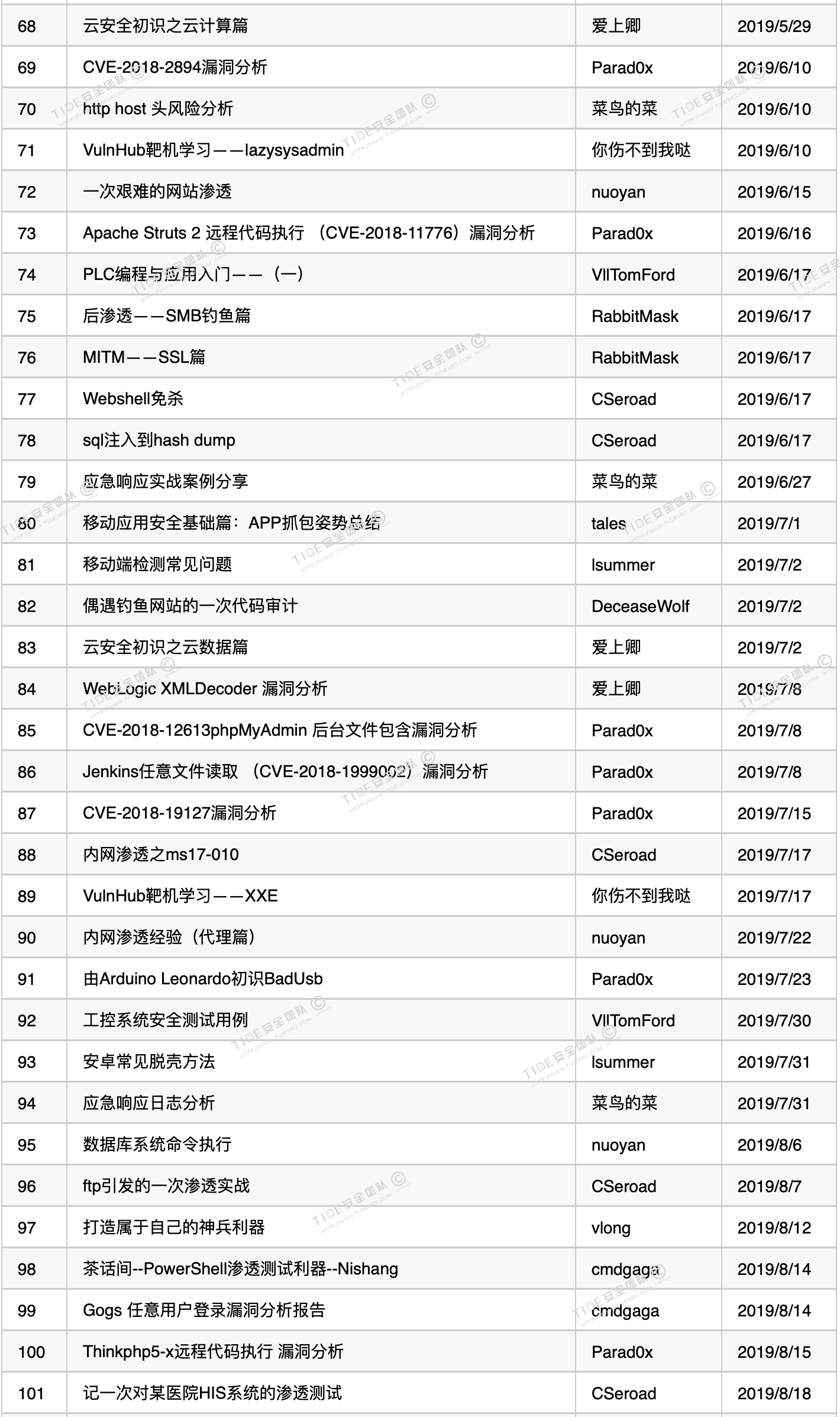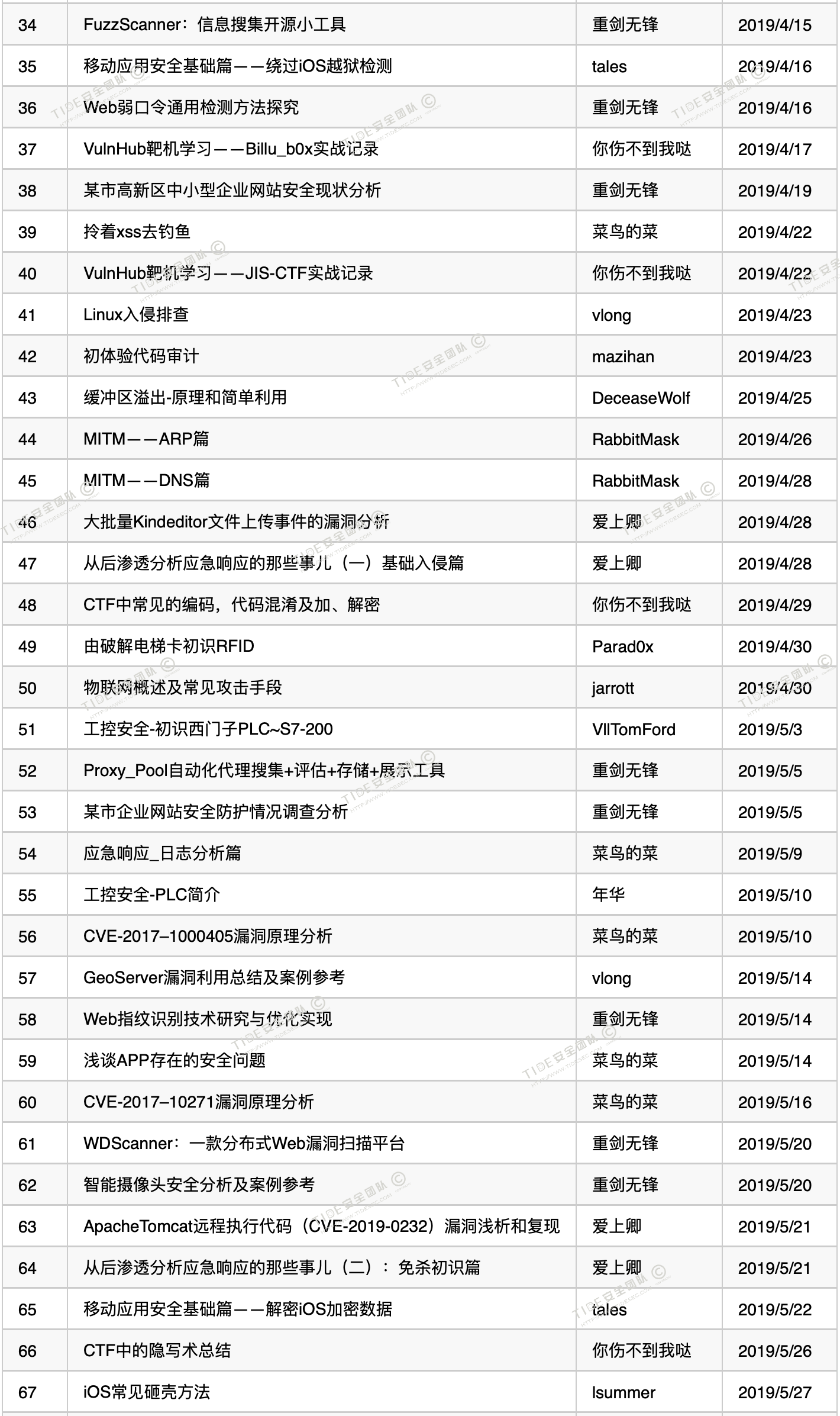 Freebuf专栏:https://zhuanlan.freebuf.com/column/index/?name=tidesec