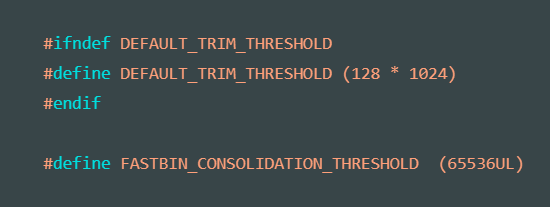 若size超过了FASTBIN_CONSOLIDATION_THRESHOLD,则尽可能地合并 fastbin中的chunk,放入unsorted bin。若top chunk大小超过了 mp_.trim_threshold,则归还部分内存给 OS。