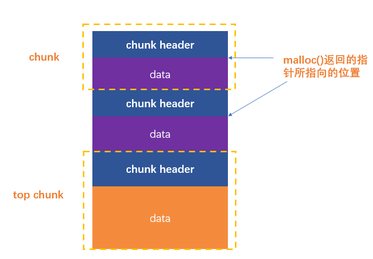 chunk是用户申请内存的单位,也是堆管理器管理内存的基本单位。malloc()返回的指针指向一个chunk的数据区域。