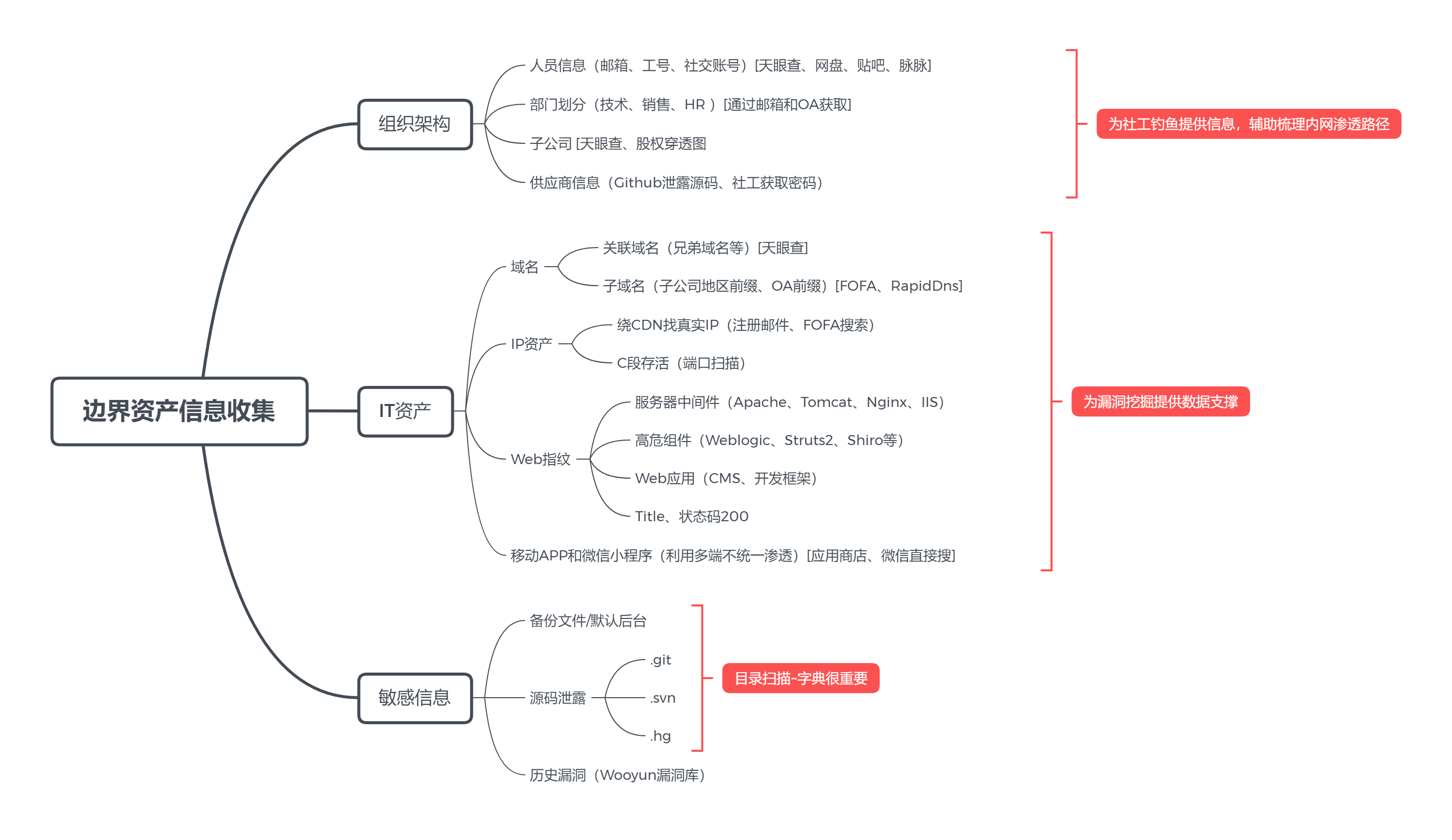 可以发现备份文件、测试文件、源码泄露、网站后台...