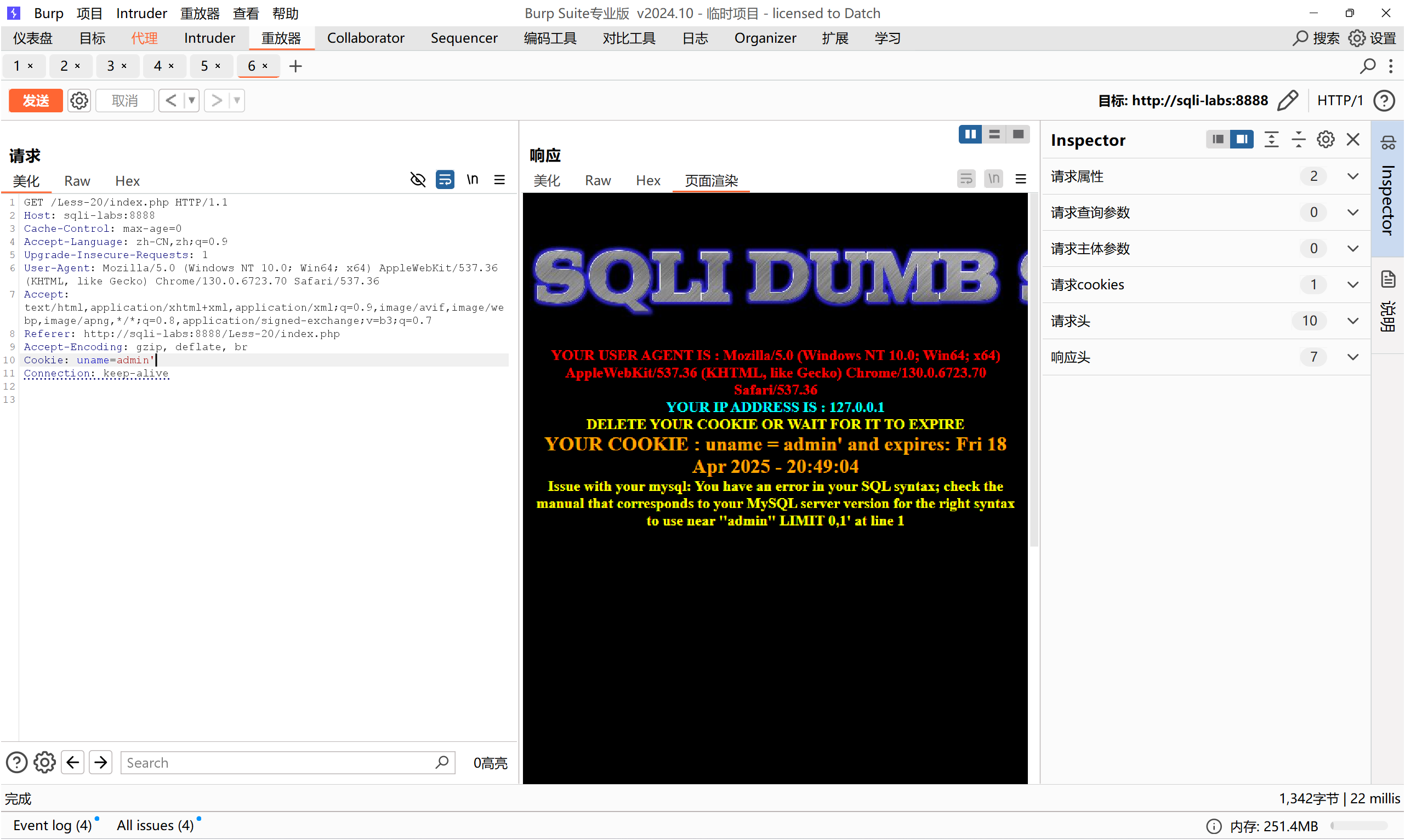 -->页面正常,‘and 1=1’被作为字符串处理