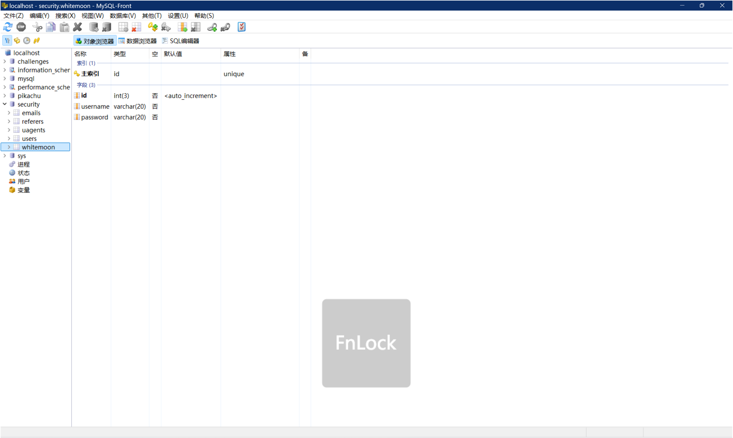 最后得第一个字段名为: id