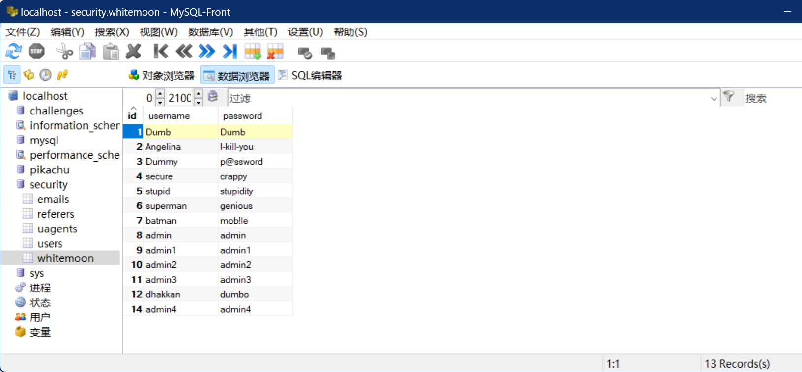 -->id,username,password