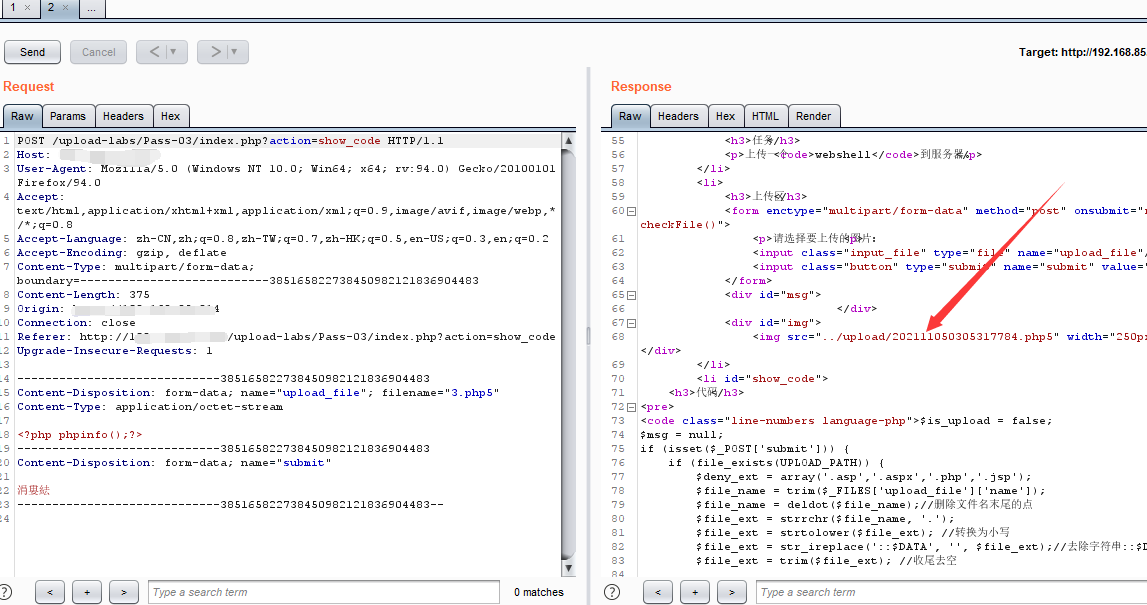 因为上传上去的文件名会改变,但是在数据包中有回显(实战中可能没有),所以我们还是可以访问的。