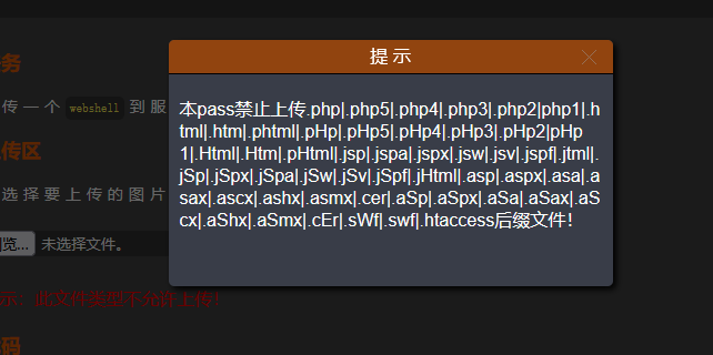 第五关其实是有些upload-labs的第九关,我也认为把这关放到第九关比较合适。如果你的第五关和我的不一样,那么我的第六关就是你的第五关,依次类推到第九关。