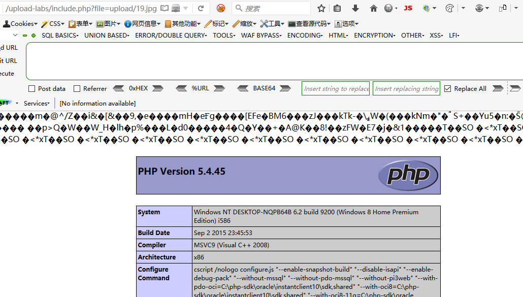 所以这关还是用和14关一样的方法,生成带有php代码的图片上传,配合包含漏洞拿下此关。