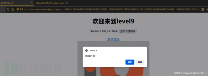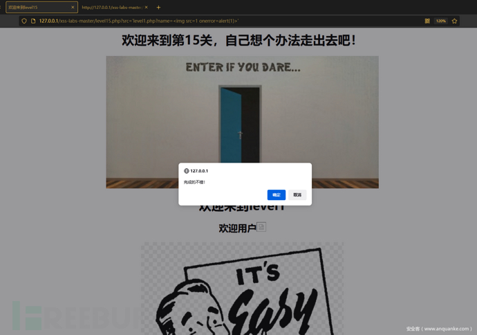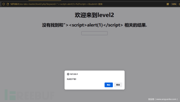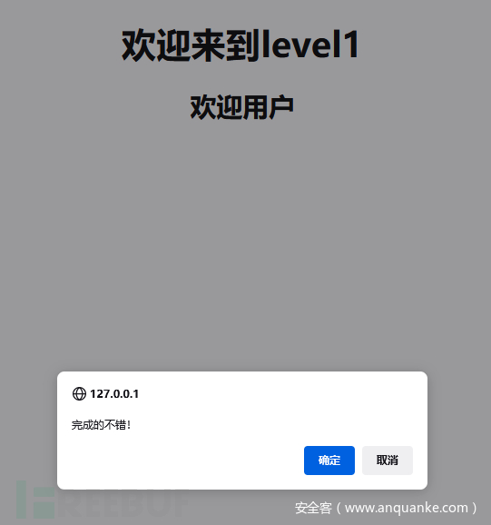 过关就一点,让浏览器蹦出弹窗即可进入下一关。但是注意!初学者不要F12自己改前端的代码,自己蹦弹窗,这是起不到训练的目的的。