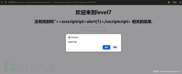 confirm("完成的不错!"); <!--confirm()方法用于显示一个带有指定消息和确定及取消按钮的对话框。我们xss一般验证就是爆一个弹窗出来-->