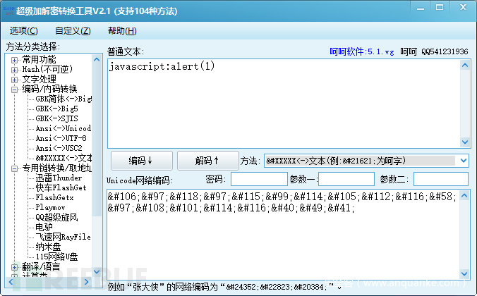 <script>\u0061\u006C\u0065\u0072\u0074(1)</script> //Unicode码 还有十六进制 URL编码 JS编码 HTML实体编码等等